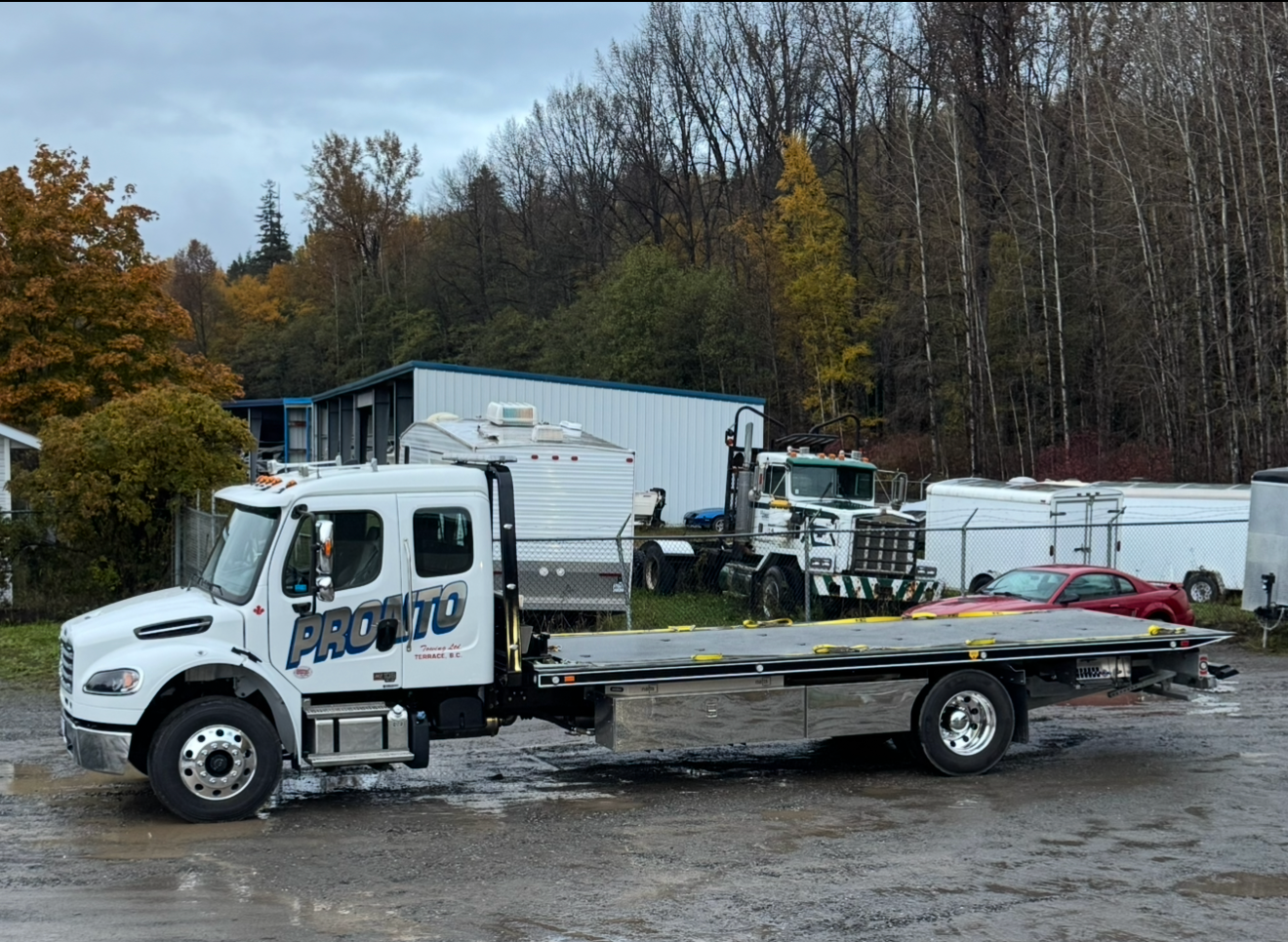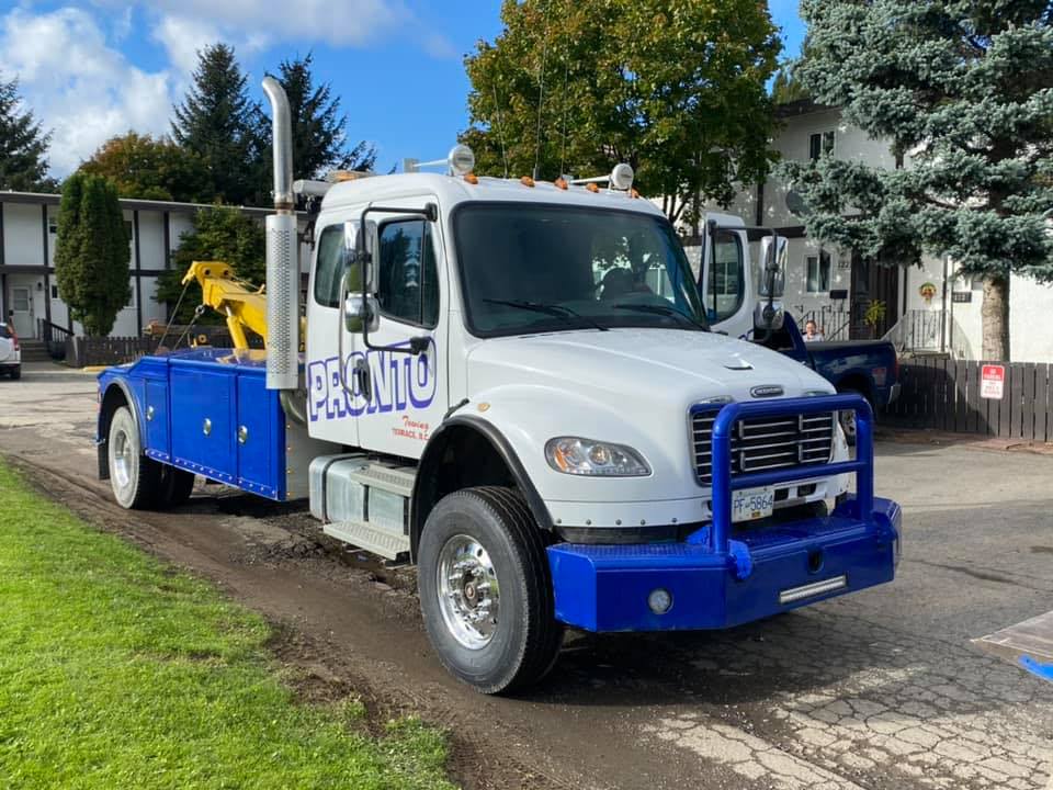 From light to medium to heavy towing jobs, Pronto Towing in Terrace has the equipment and trained technicians needed to get it done pronto. Our equipment includes Kenworth and Freightliner® trucks along with wreckers, flat decks, and trailers from industry-leading manufacturers.