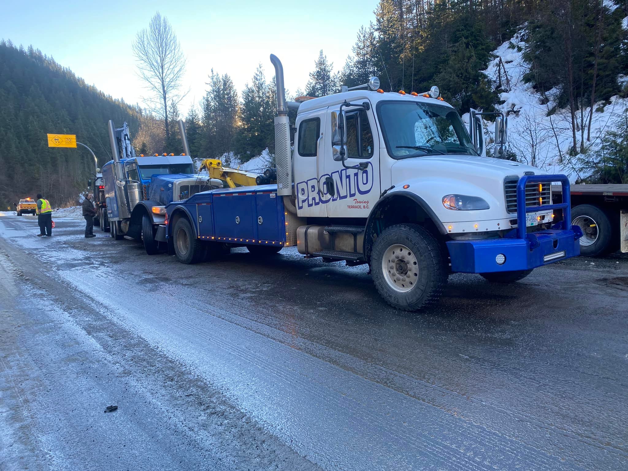 Pronto Towing has proudly served Terrace, Kitimat, and the Northern BC region since the early 1980s, offering top-tier towing and roadside assistance services. With over 45 years of experience, our team specializes in everything from emergency towing and battery boosts to heavy-duty and long-distance vehicle recovery. We’re a fully licensed and insured company, working with trusted partners like ICBC and BCAA. Whether you’re a stranded motorist or a commercial driver in need of fast, safe service, Pronto Towing is here to help.
