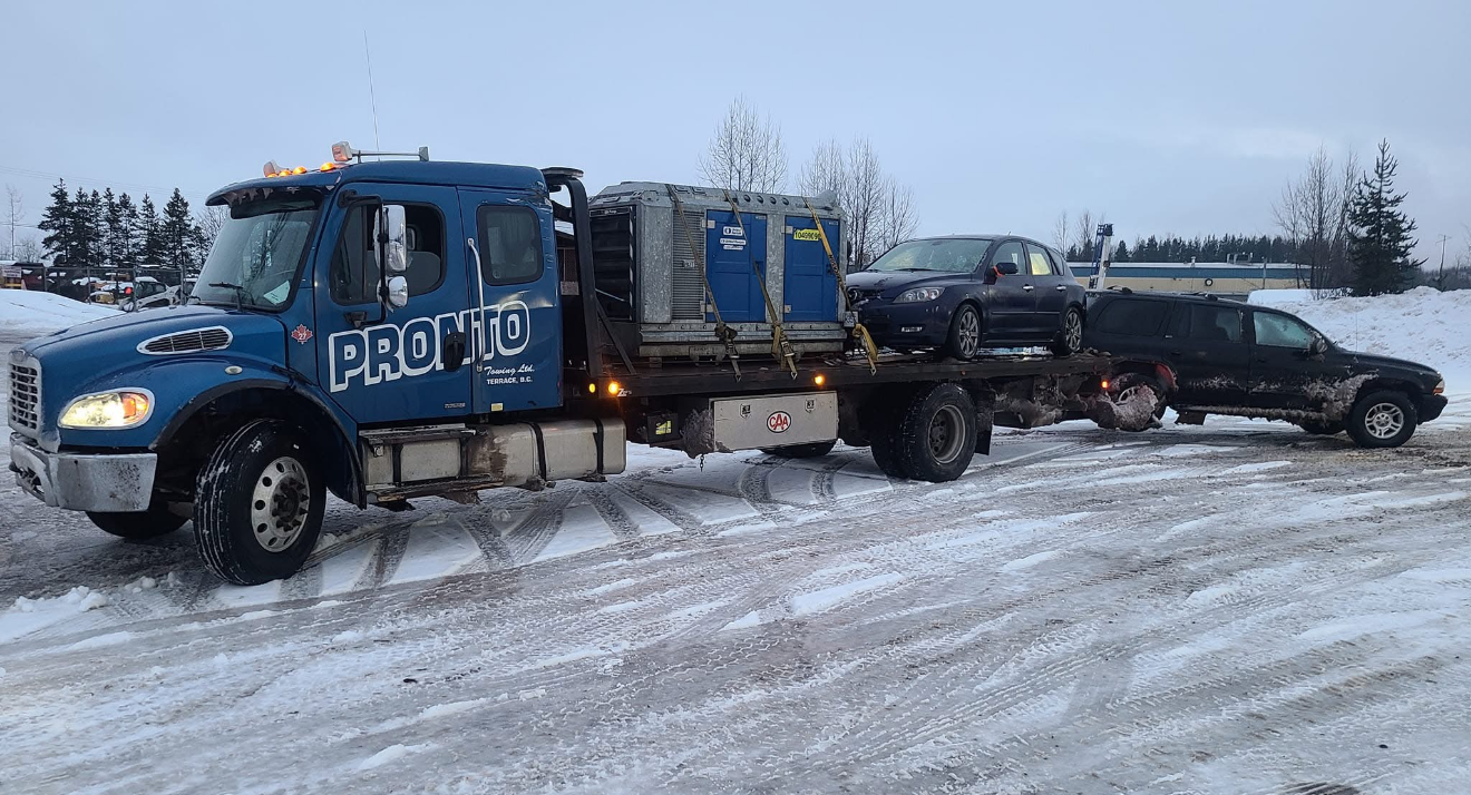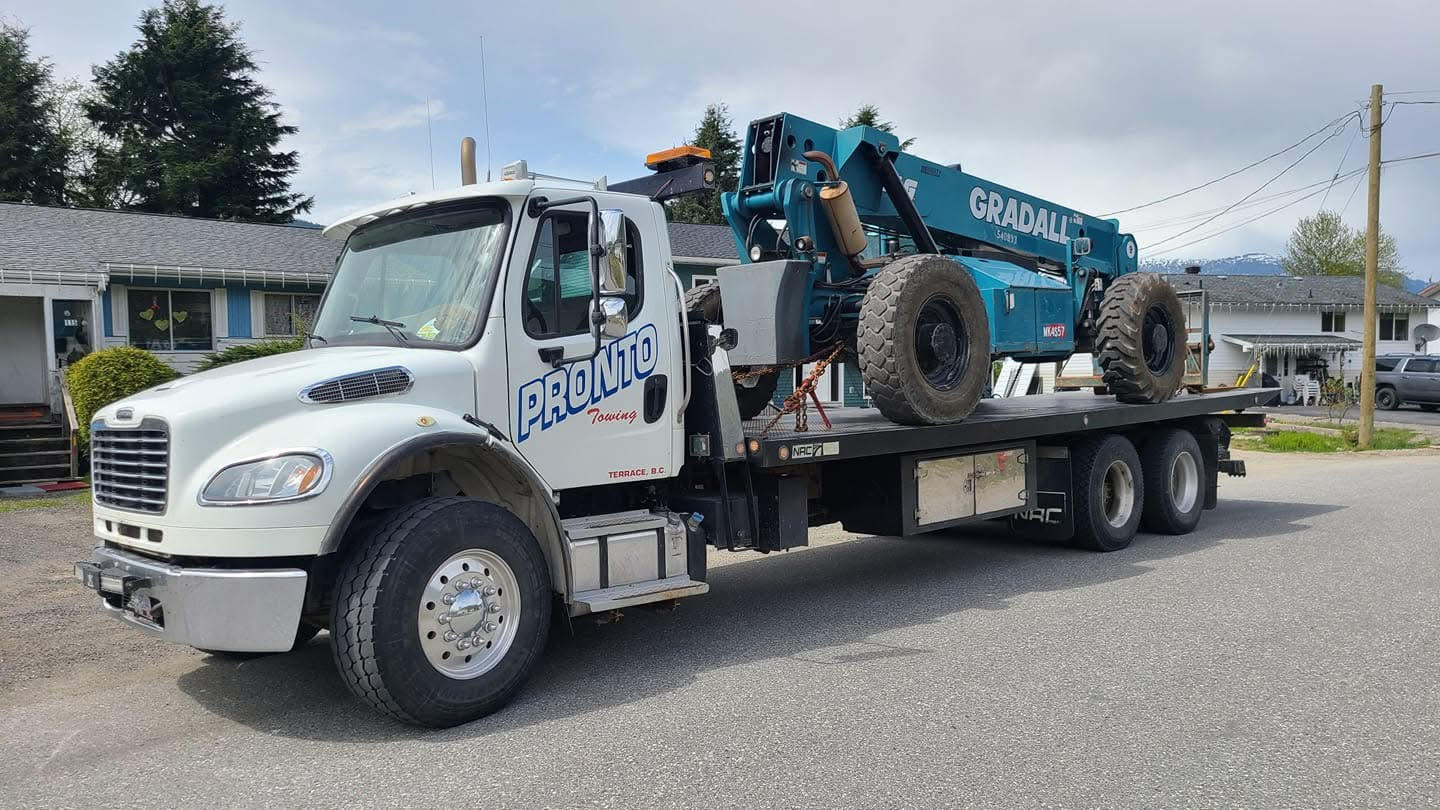 If you need flatbed towing to transport equipment, vehicles, or other goods in northern B.C., call the experienced and precise team at Pronto Towing in Terrace. We’re always ready to help you find the right transportation solution for your goods.